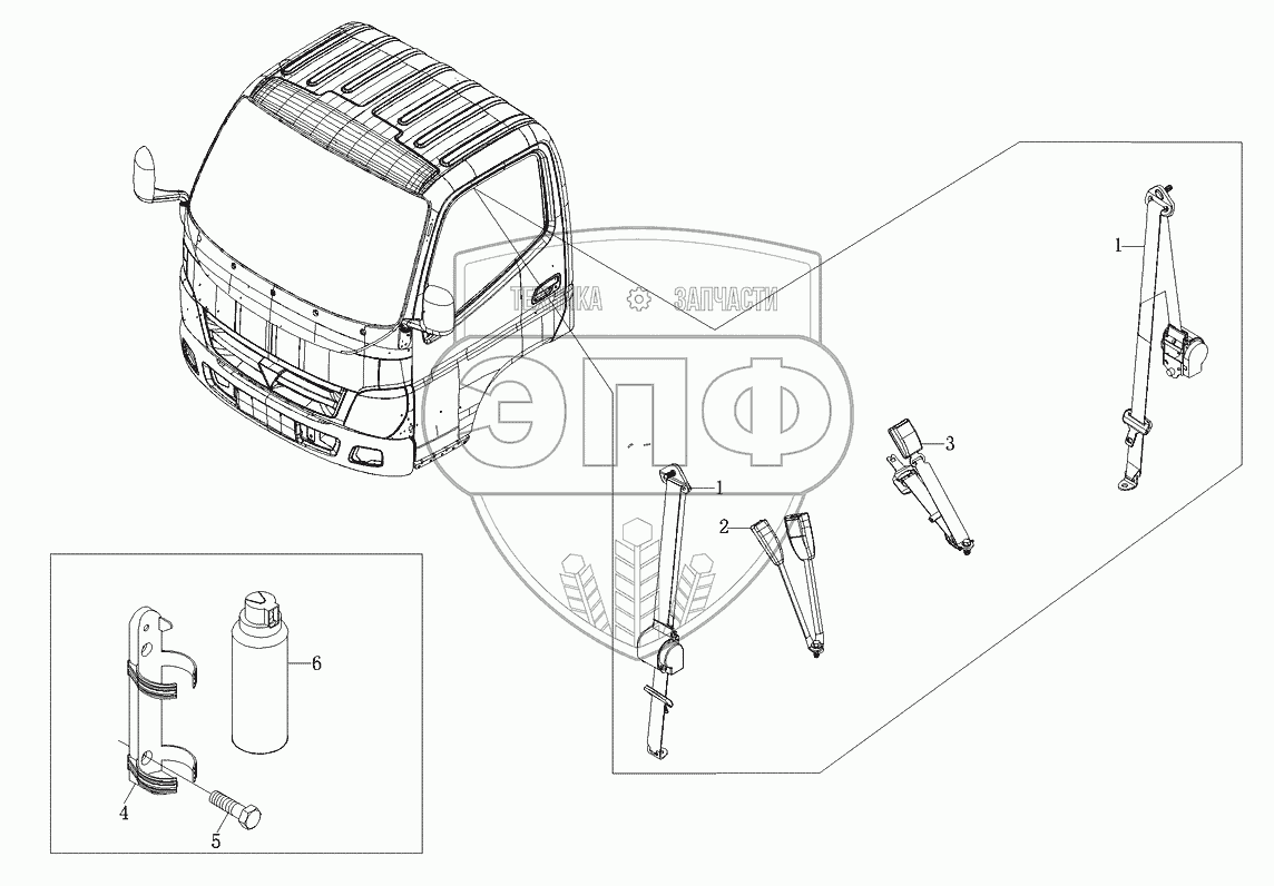 Каталог запасных частей к технике: Foton-BJ1039. Ремень безопасности, огнетушитель