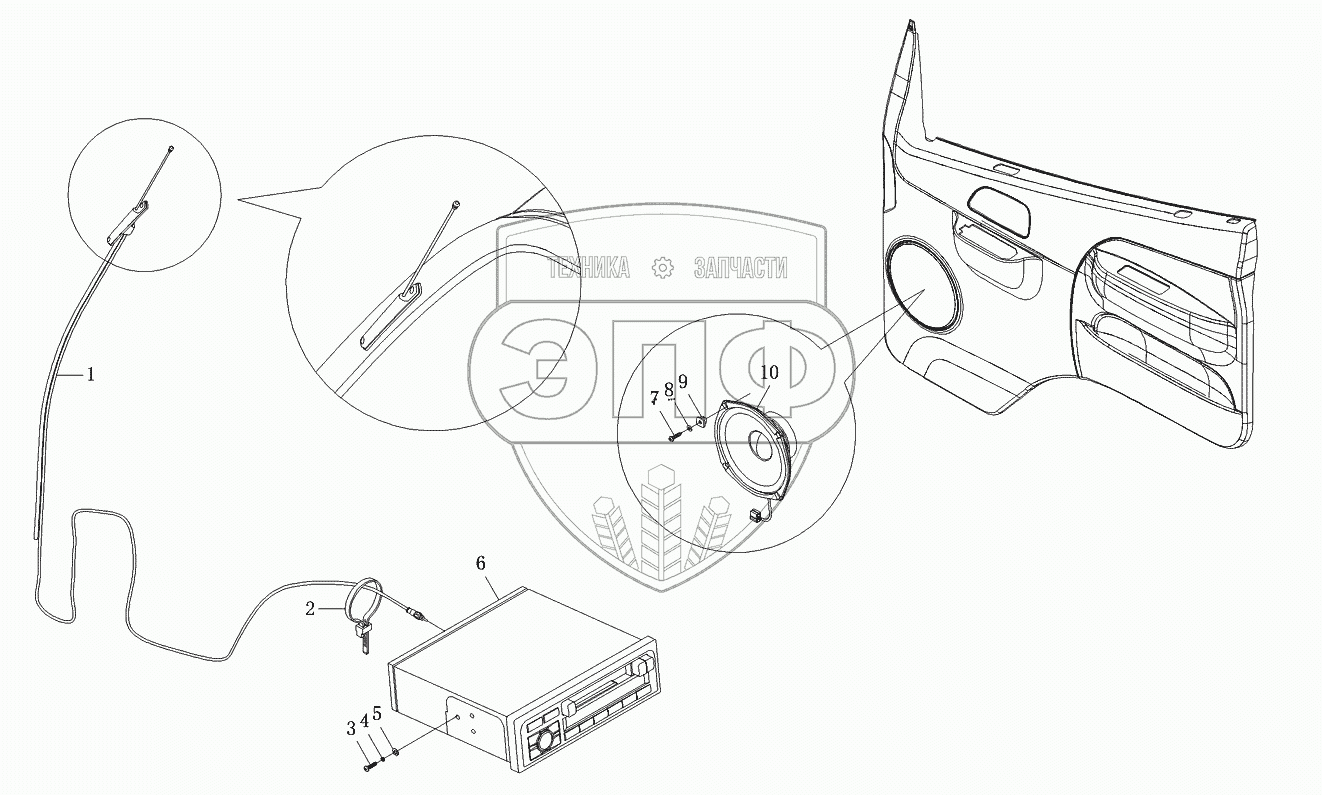 Каталог запасных частей к технике: Foton-BJ1049. Акустическая система