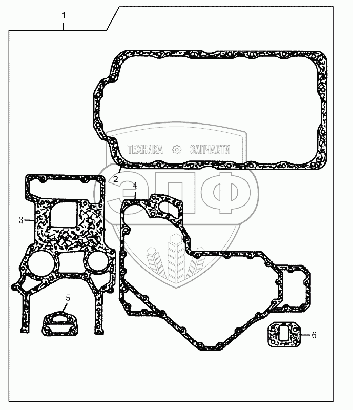Каталог запасных частей к технике: Foton-BJ1049. Комплект прокладок нижней части двигателя