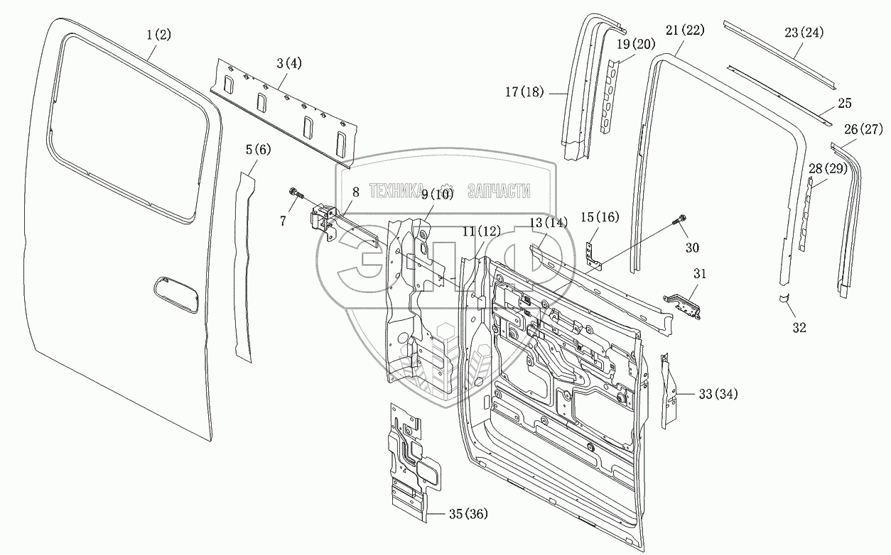 Каталог запасных частей к технике: Foton-BJ1049. Дверь задняя
