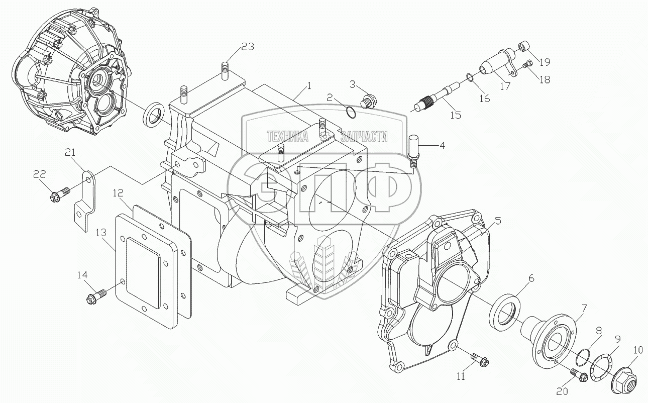 Каталог запасных частей к технике: Foton-BJ1049. Картер коробки передач