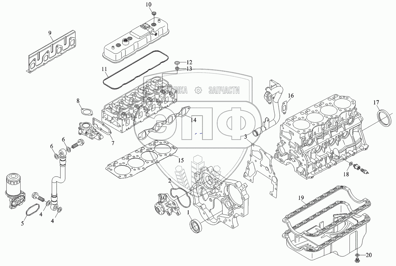 Каталог запасных частей к технике: Foton-BJ1049. Комплект прокладок двигателя
