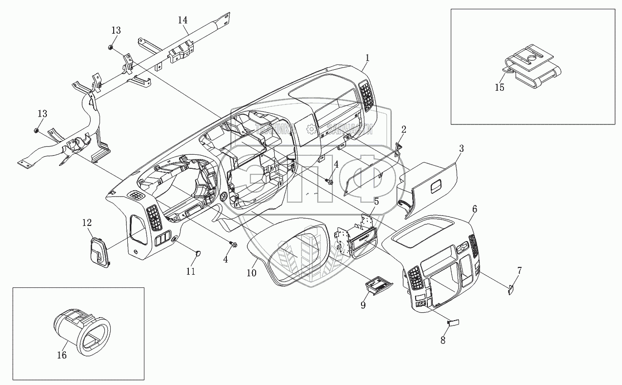 | 14 | 1В18053500004 | Кронштейн панели приборов | Нет на складе | |