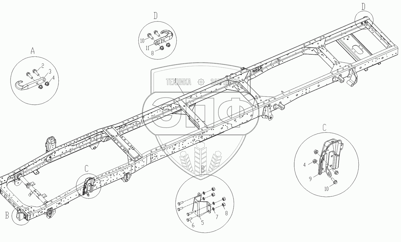 Каталог запасных частей к технике: Foton-BJ1049. Рама