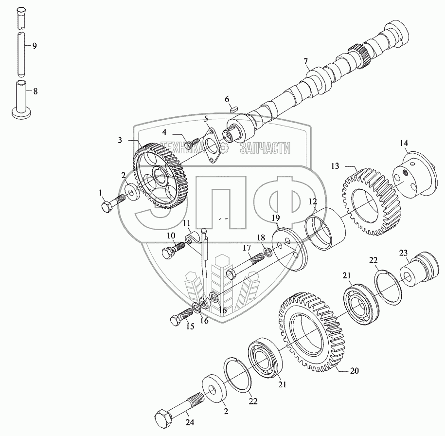 | 24 | Е049305000007 | Болт верхней паразитной шестерни | Нет на складе |