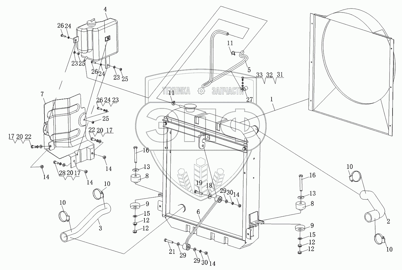 Каталог запасных частей к технике: Foton-BJ1049. Система охлаждения