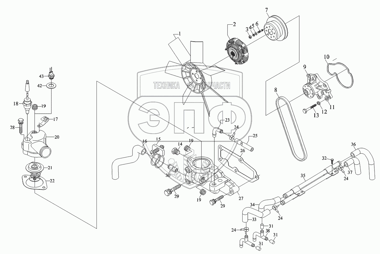 Каталог запасных частей к технике: Foton-BJ1049. Система охлаждения