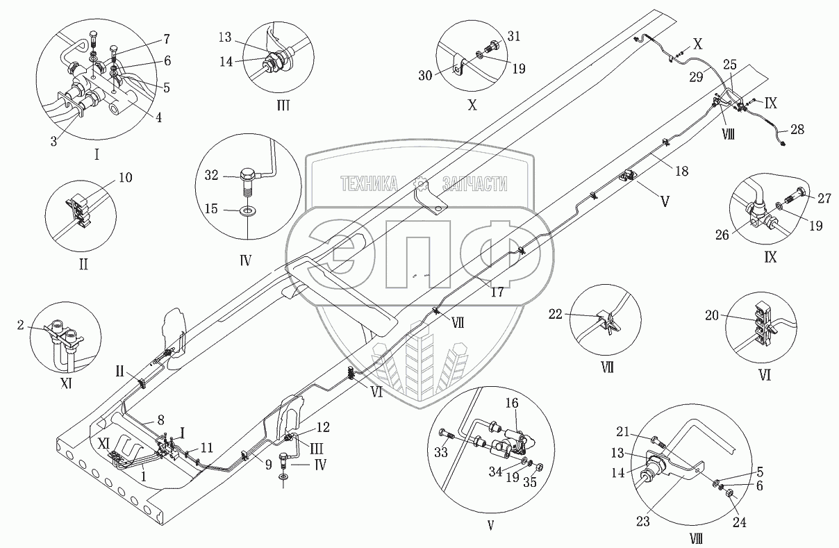 Каталог запасных частей к технике: Foton-BJ1049. Трубопроводы тормозной системы