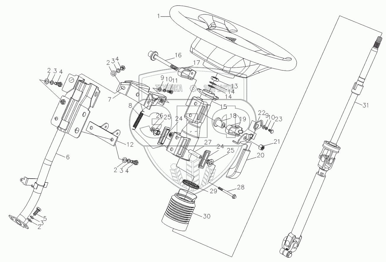 Каталог запасных частей к технике: Foton-BJ1049. Управление рулевое
