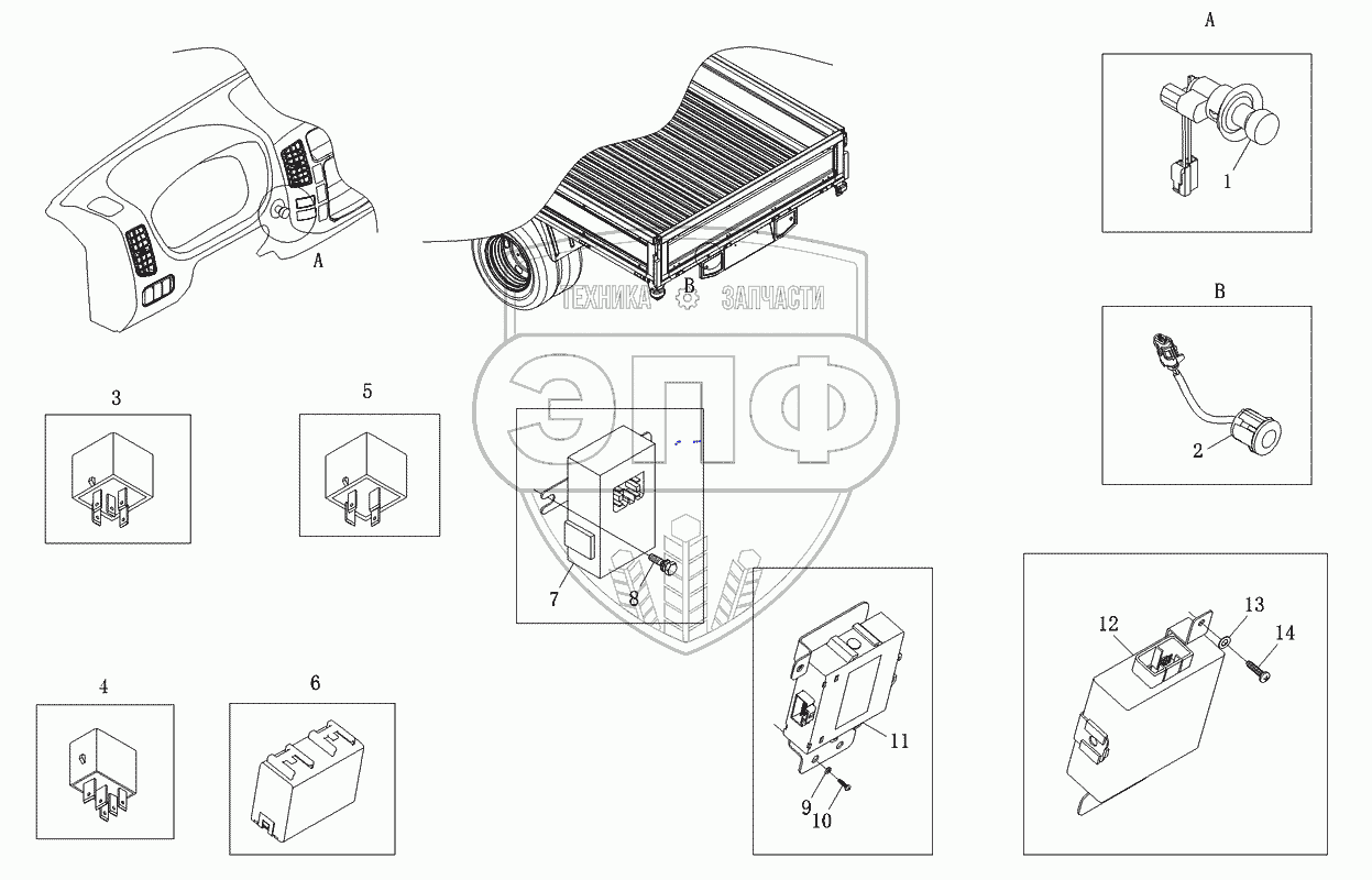 Каталог запасных частей к технике: Foton-BJ1049. Выключатель. Электрические аксессуары. Реле