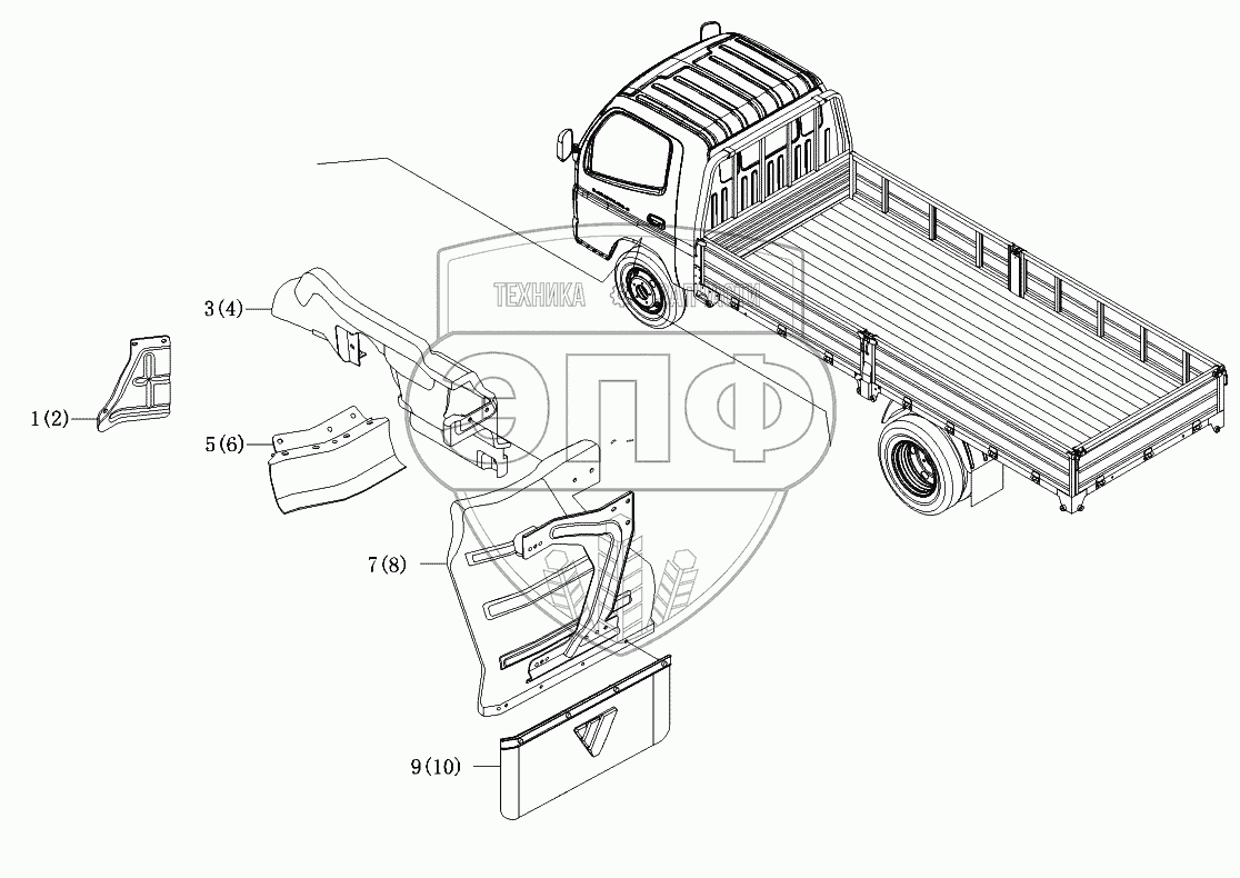 Каталог запасных частей к технике: Foton-BJ1069. Брызговик