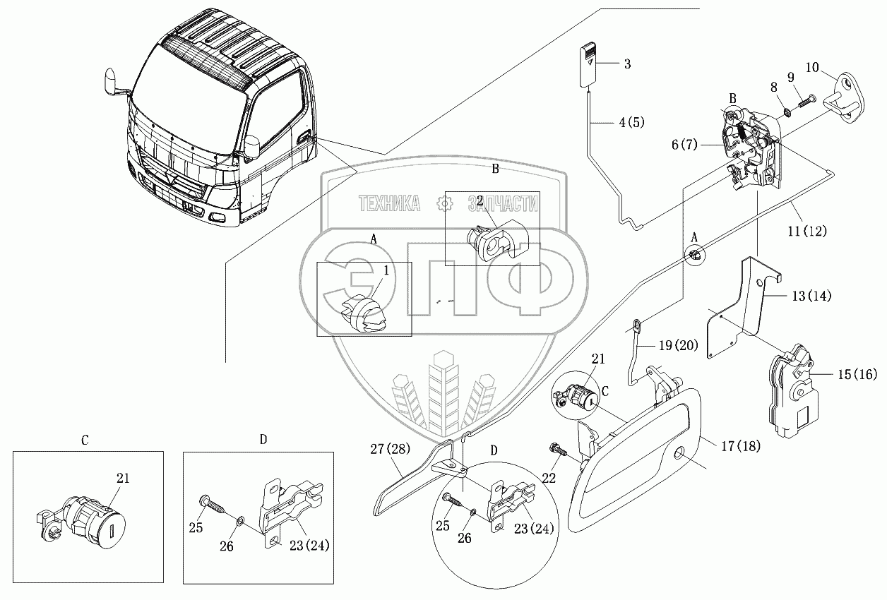 Каталог запасных частей к технике: Foton-BJ1069. Дверной замок