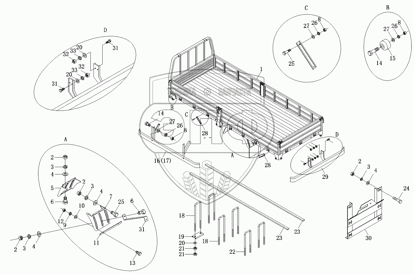 Каталог запасных частей к технике: Foton-BJ1069. Платформа