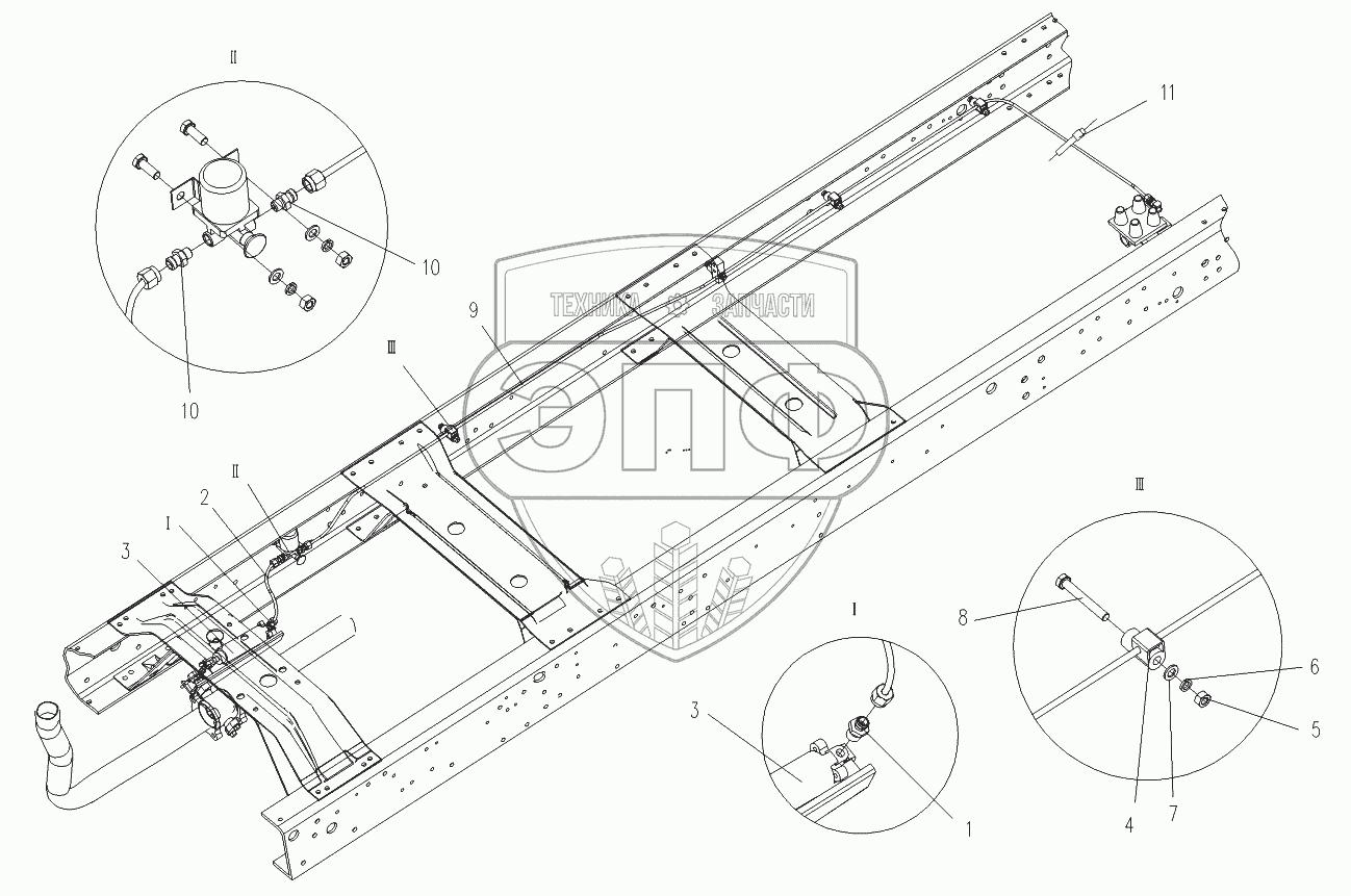 Каталог запасных частей к технике: Foton-BJ1069. Трубопроводы тормозной системы