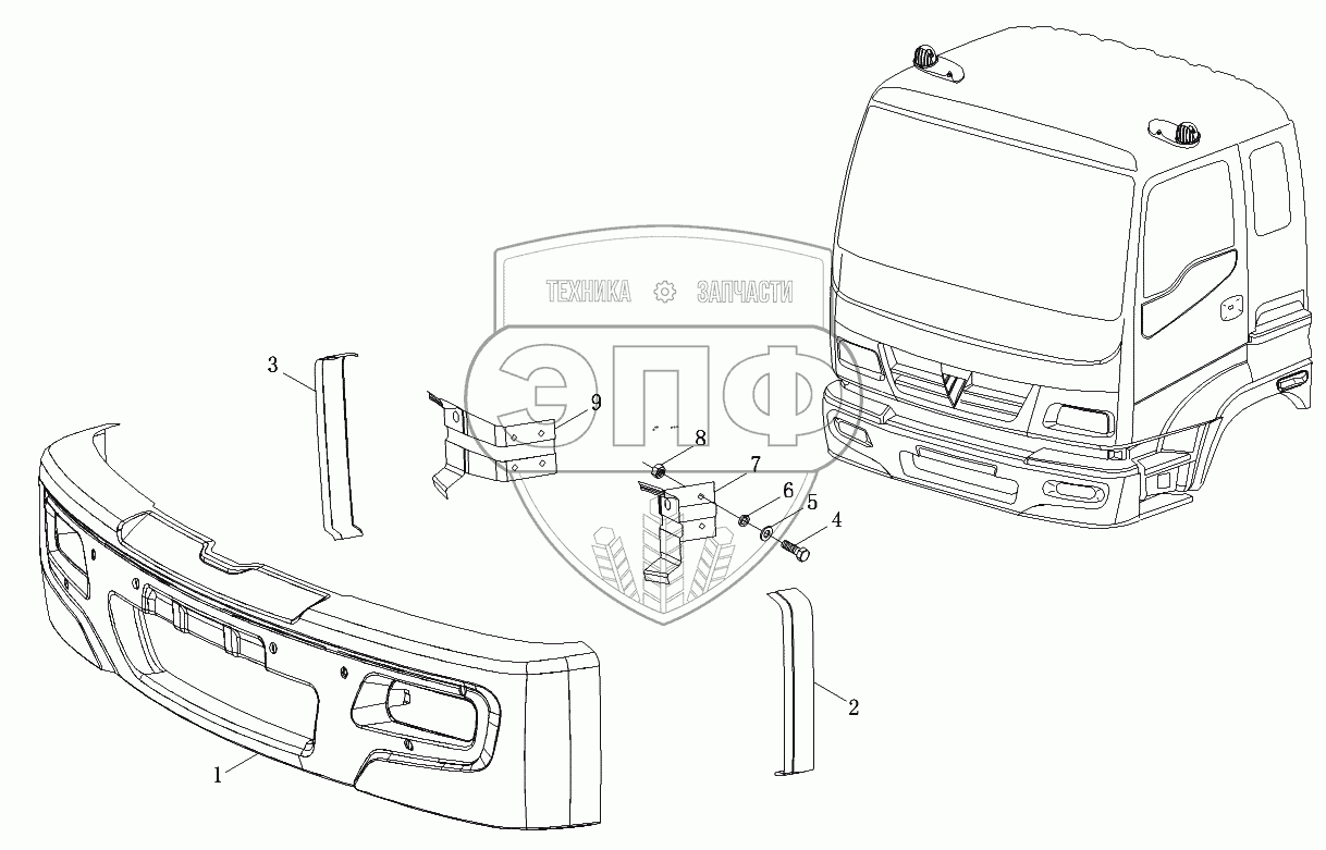 Каталог запасных частей к технике: Foton-BJ1099. Бампер передний