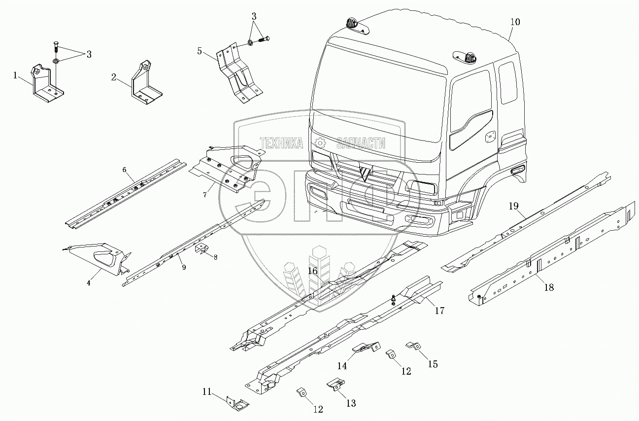 Каталог запасных частей к технике: Foton-BJ1099. Элементы кабины