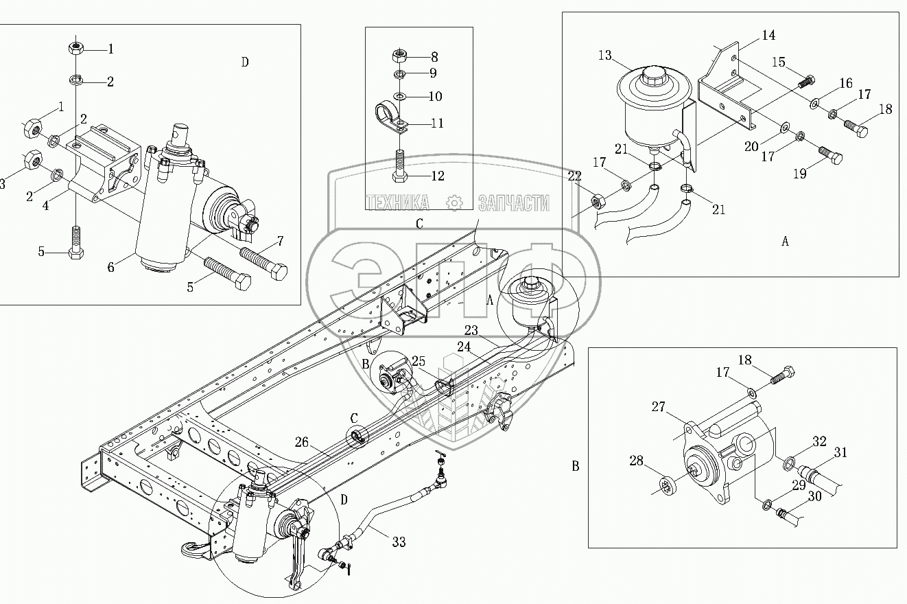 Каталог запасных частей к технике: Foton-BJ1099. Гидроусилитель рулевого управления