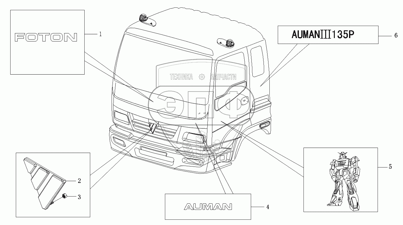 Каталог запасных частей к технике: Foton-BJ1099. Логотипы кабины