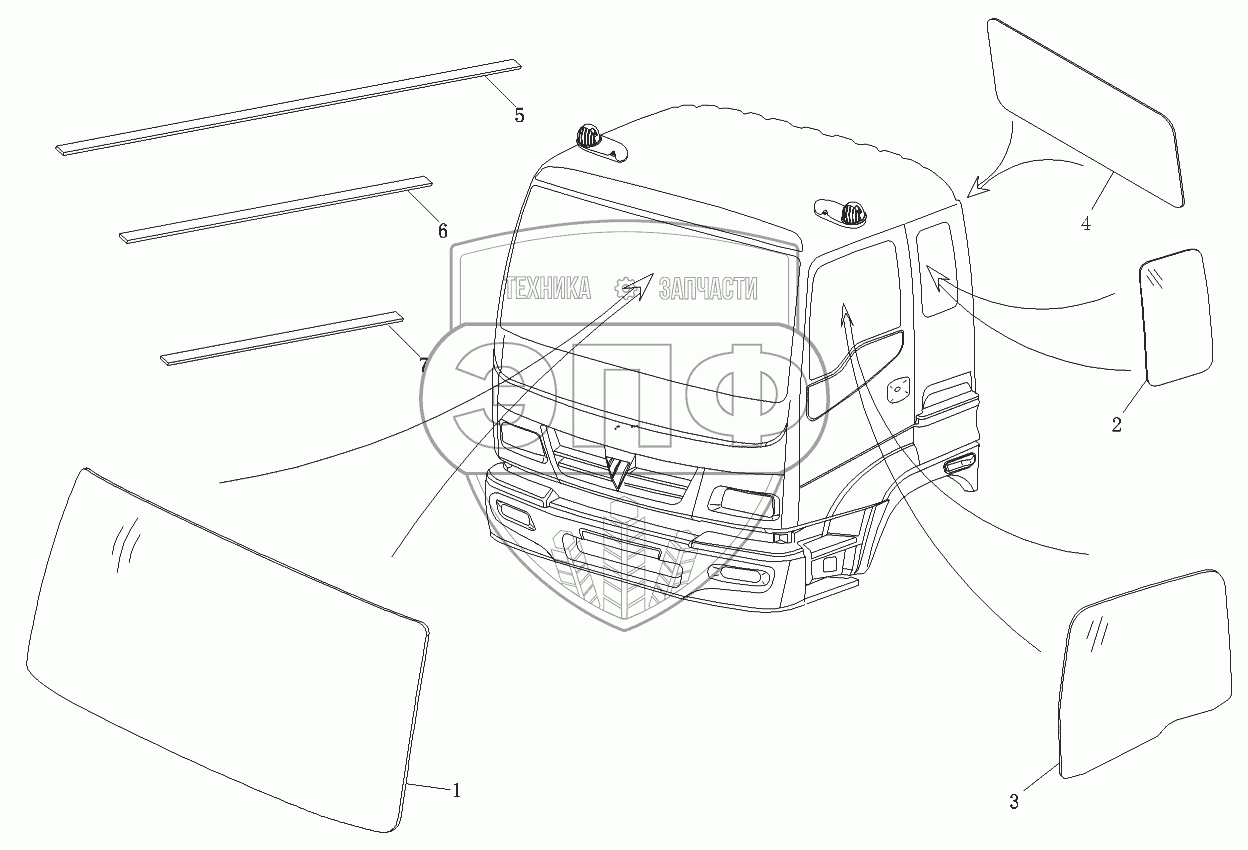 Каталог запасных частей к технике: Foton-BJ1099. Остекление кабины