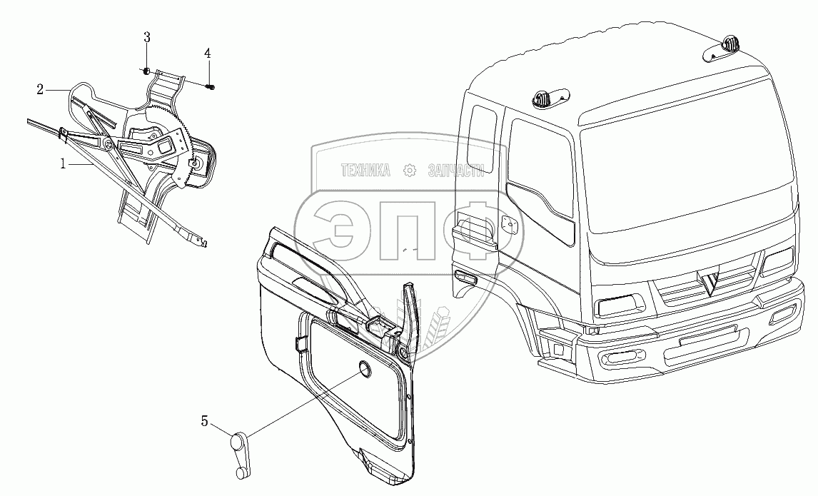 Каталог запасных частей к технике: Foton-BJ1099. Стеклоподъемник