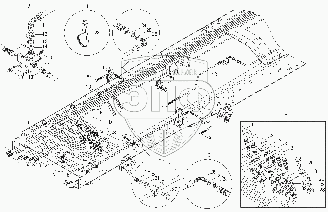 Каталог запасных частей к технике: Foton-BJ1099. Трубопроводы тормозной системы