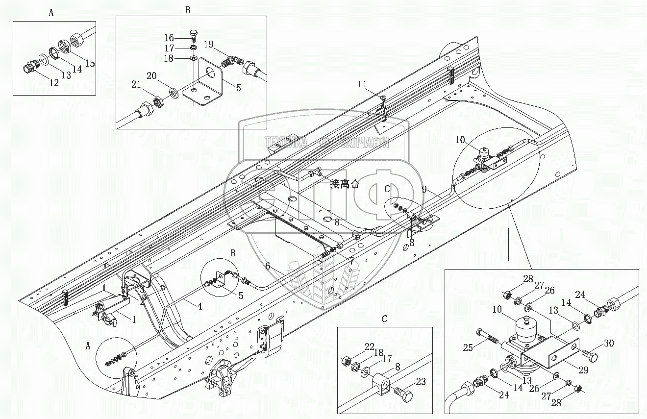 Каталог запасных частей к технике: Foton-BJ1099. Трубопроводы тормозной системы