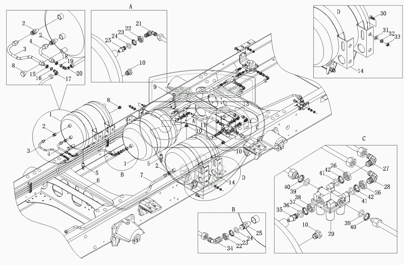 Каталог запасных частей к технике: Foton-BJ1099. Трубопроводы тормозной системы