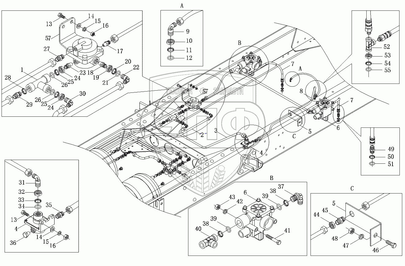 Каталог запасных частей к технике: Foton-BJ1099. Трубопроводы тормозной системы