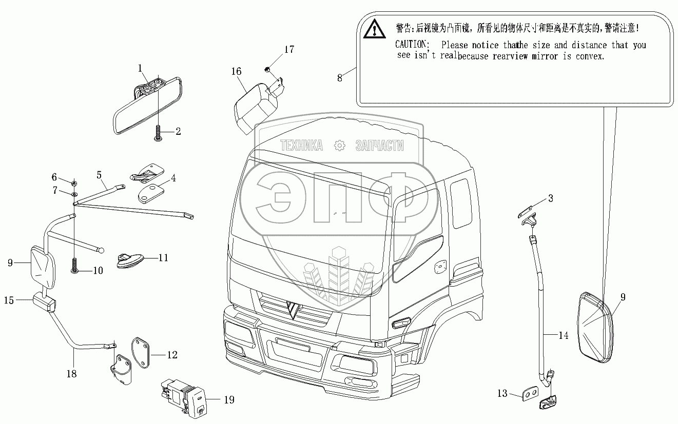 Каталог запасных частей к технике: Foton-BJ1099. Зеркала заднего вида