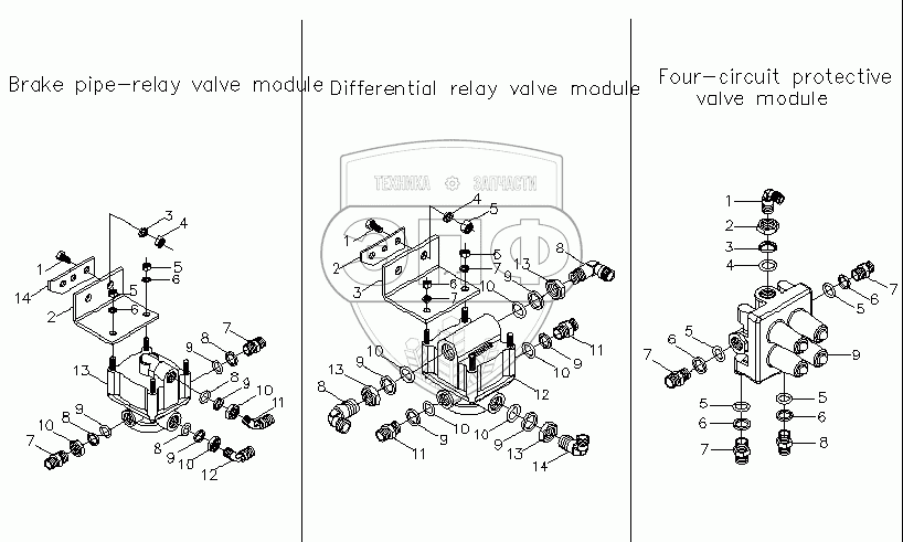 Каталог запасных частей к технике: Foton-BJ3251DLPJB. 4-х контурный защитный клапан
