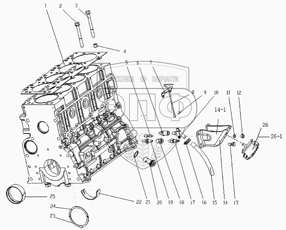 Каталог запасных частей к технике: Foton Оllin Express I. 1S10591000115 Блок-картер 1