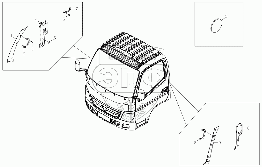 Каталог запасных частей к технике: Foton Оllin Express I. 1SB2005410103 Агрегат боковой панели