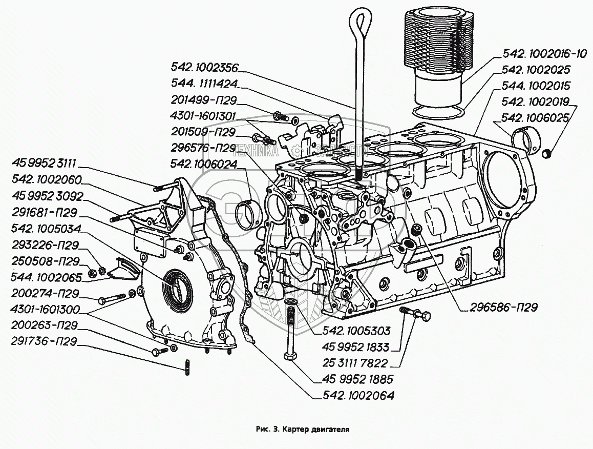 Каталог запасных частей к технике: ГАЗ-3306. Картер двигателя