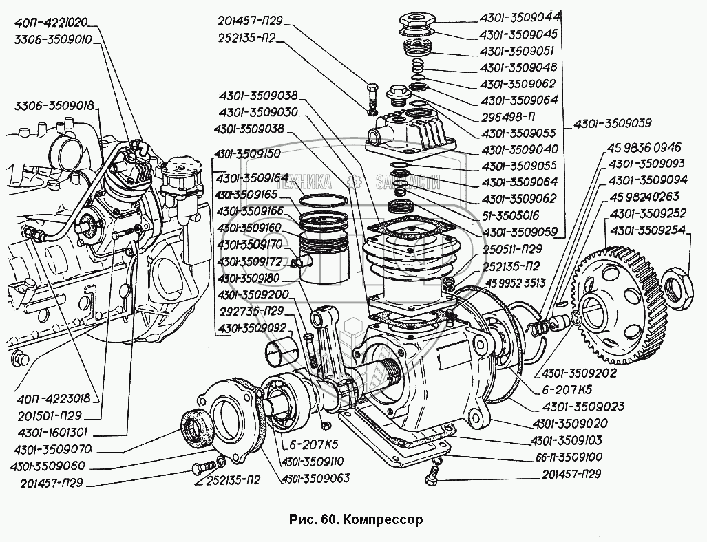Каталог запасных частей к технике: ГАЗ-3306. Компрессор