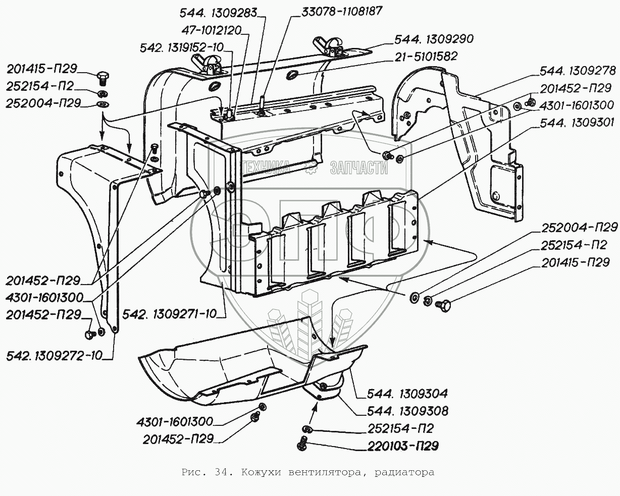 Каталог запасных частей к технике: ГАЗ-3306. Кожухи вентилятора, радиатора