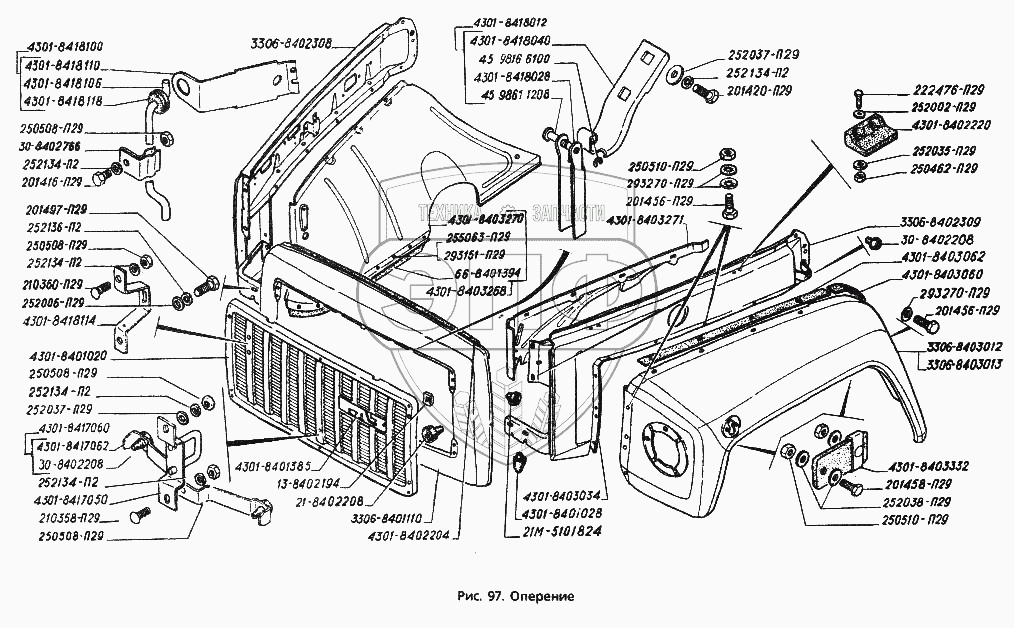 Каталог запасных частей к технике: ГАЗ-3306. Оперение