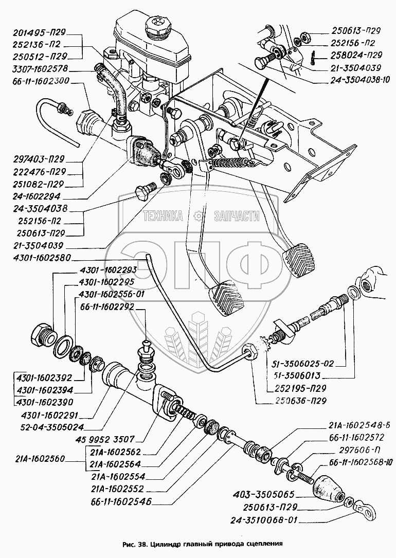 Каталог запасных частей к технике: ГАЗ-3306. Цилиндр главный привода сцепления