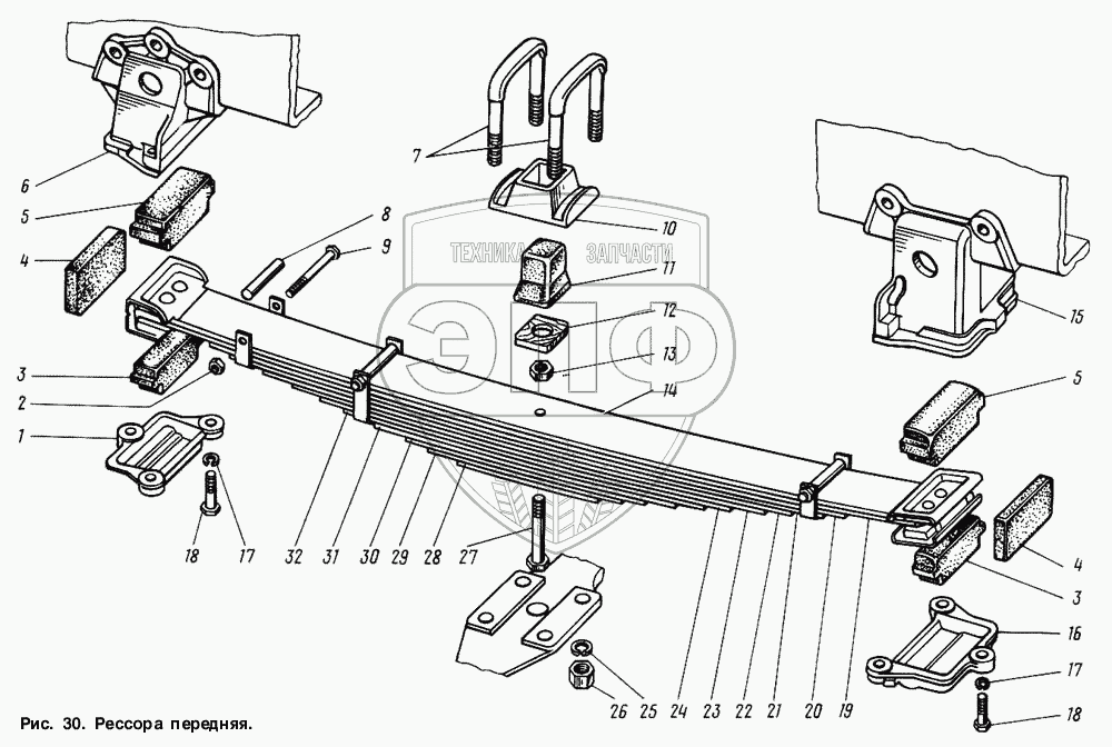 Каталог запасных частей к технике: ГАЗ-3307. Рессора передняя