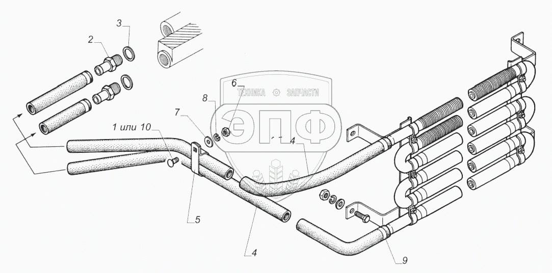 Каталог запасных частей к технике: ГАЗ-33081. 3309-1013001-10. Установка шлангов