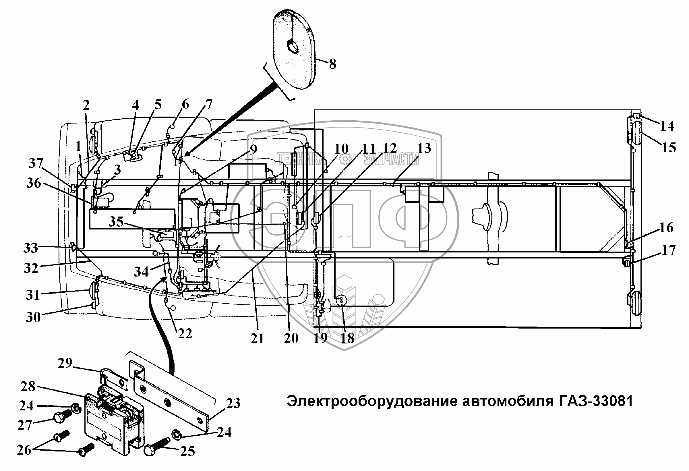 Каталог запасных частей к технике: ГАЗ-3308. Электроообрудование автомобиля ГАЗ-33081