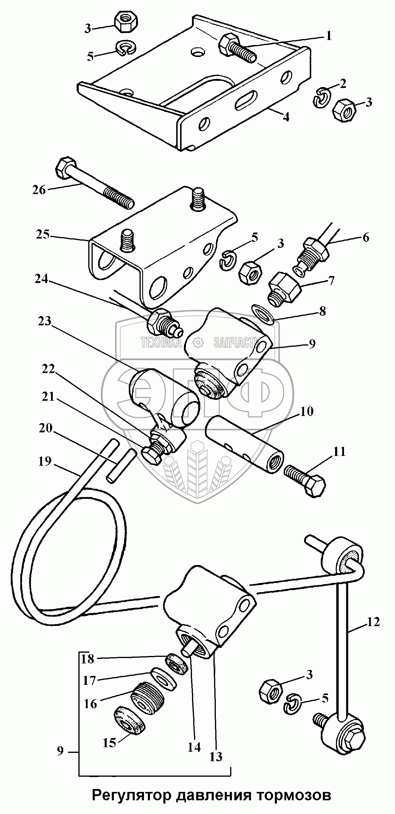 Каталог запасных частей к технике: ГАЗ-3308. Регулятор давления тормозов