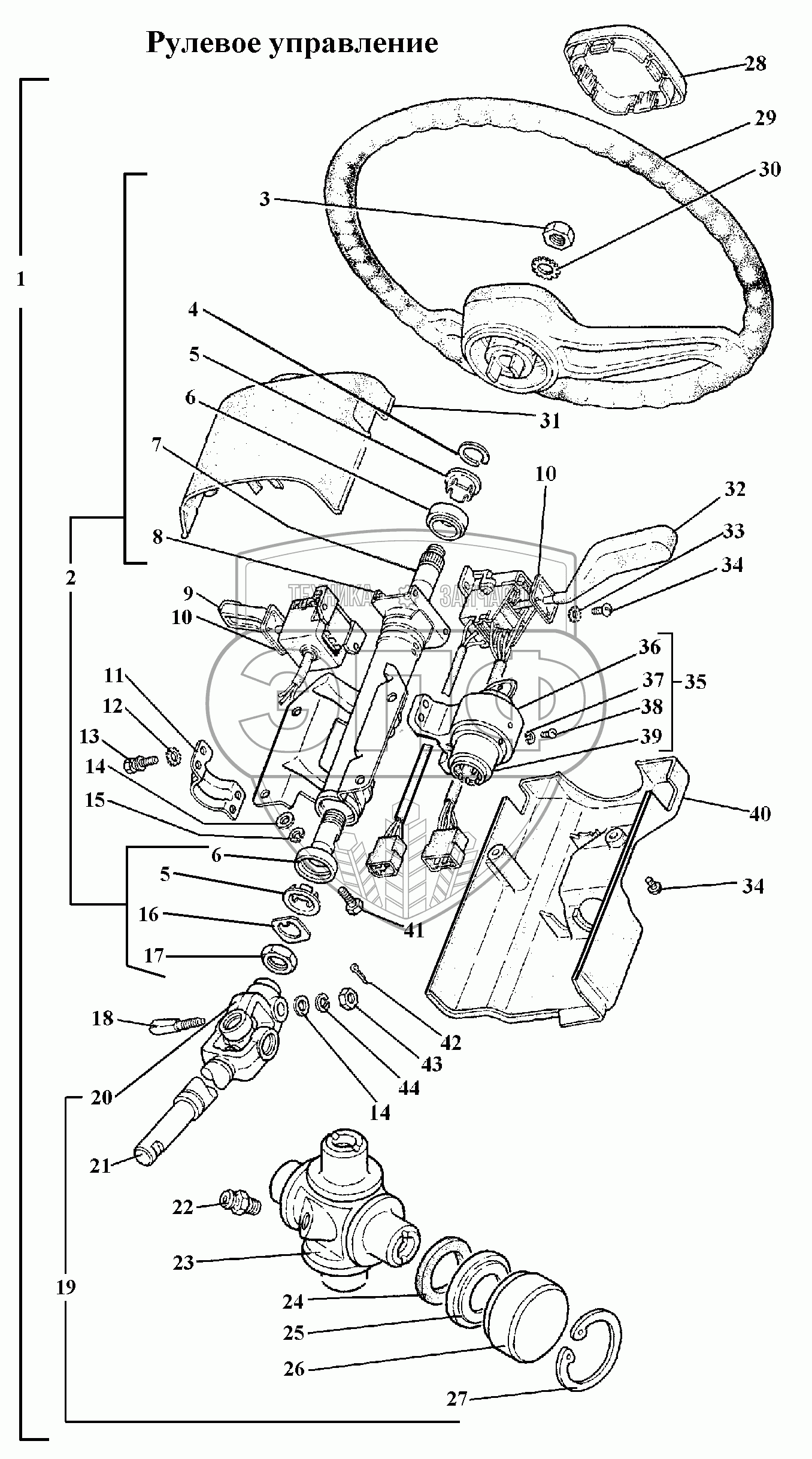 Каталог запасных частей к технике: ГАЗ-3308. Рулевое управление