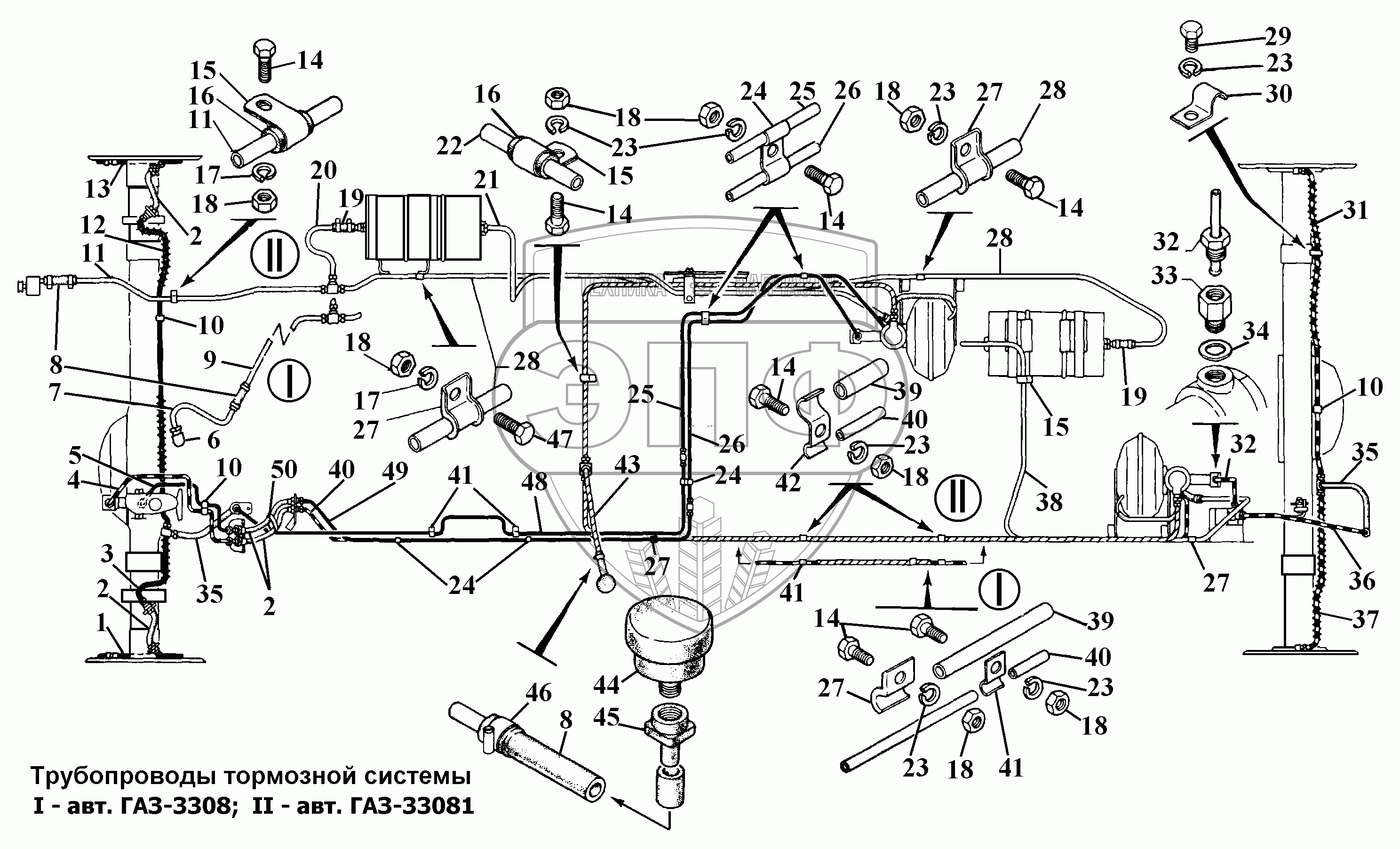 Каталог запасных частей к технике: ГАЗ-3308. Трубопроводы тормозной системы