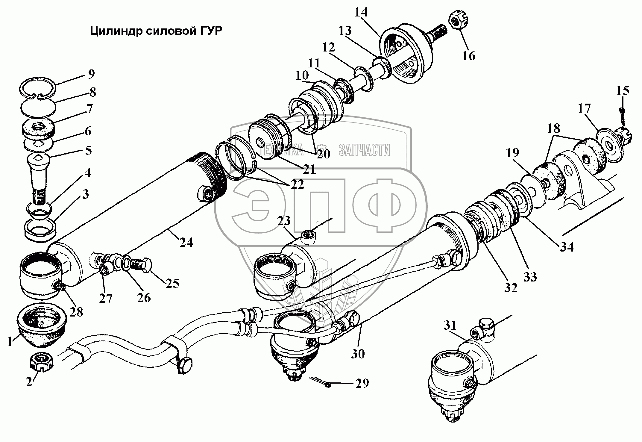 Каталог запасных частей к технике: ГАЗ-3308. Цилиндр силовой ГУР