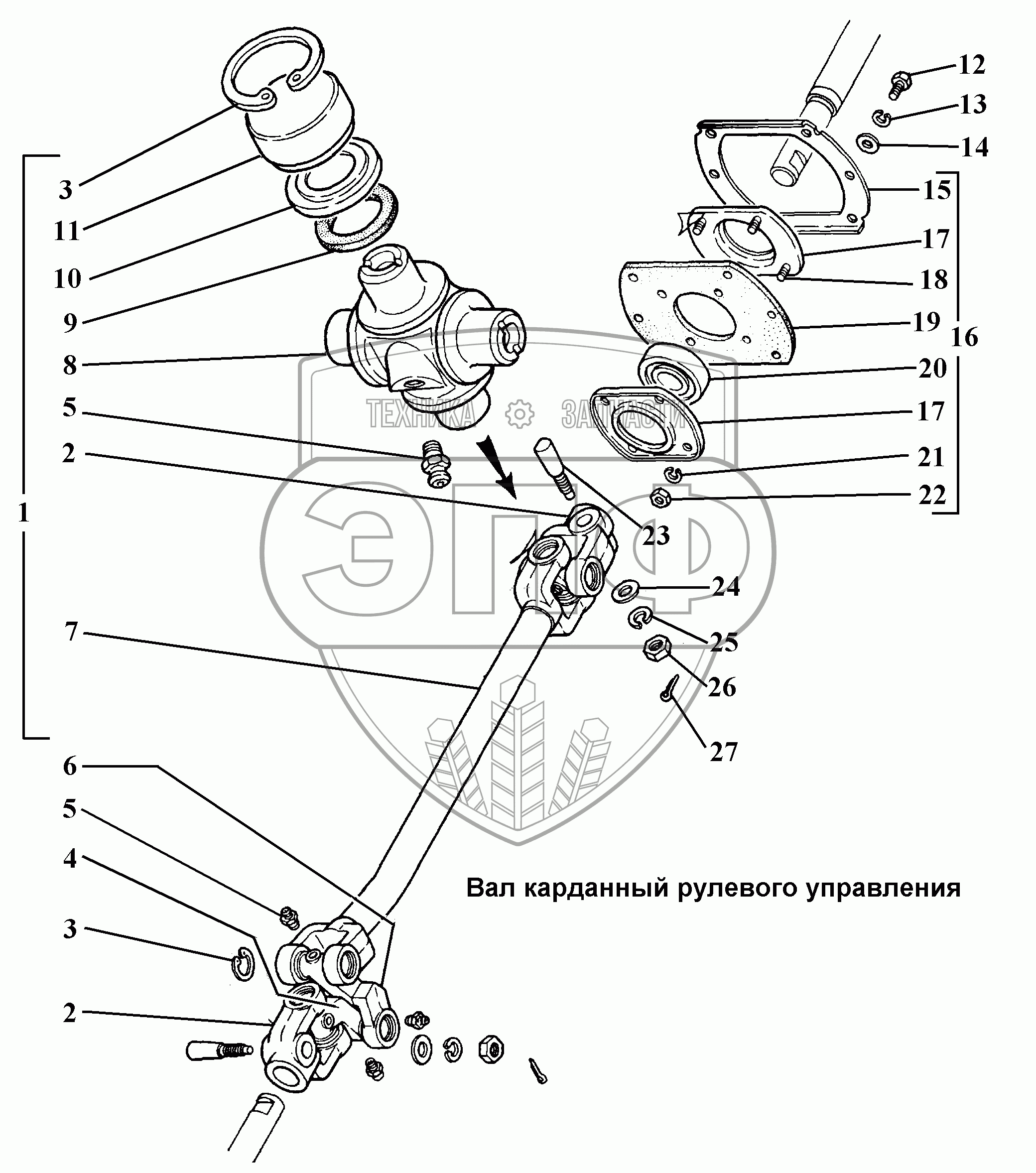 Каталог запасных частей к технике: ГАЗ-3308. Вал карданный рулевого управления