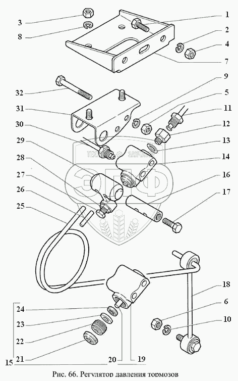 Каталог запасных частей к технике: ГАЗ-3308. Регулятор давления тормозов