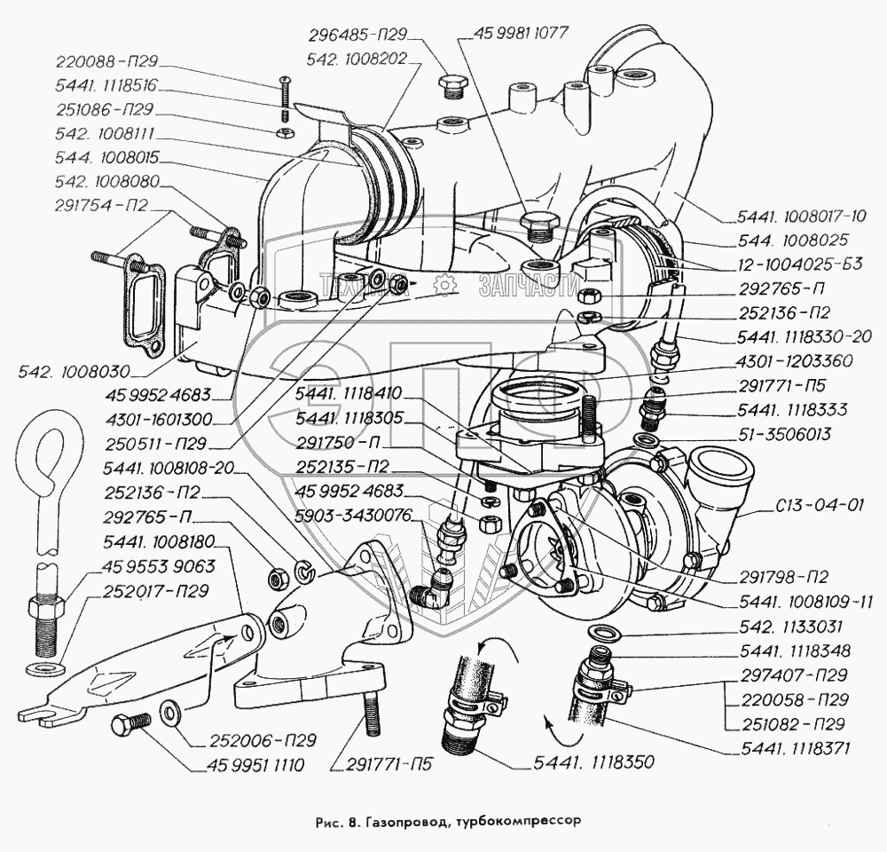 Каталог запасных частей к технике: ГАЗ-3309. Газопровод, турбокомпрессор