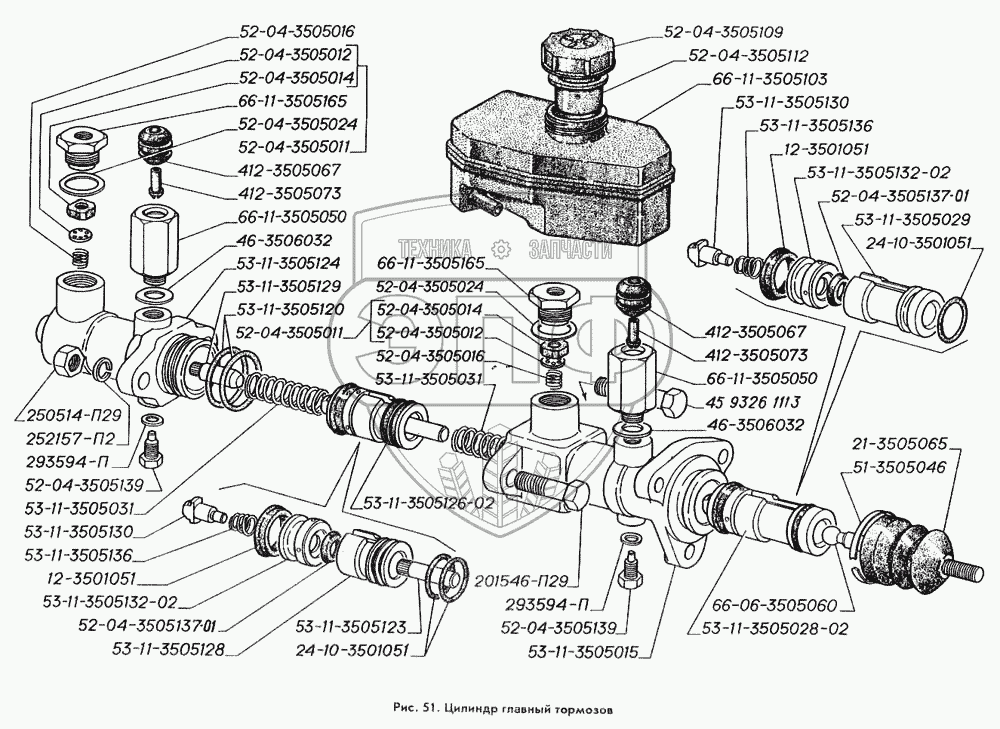 Каталог запасных частей к технике: ГАЗ-3309. Цилиндр главный тормозов