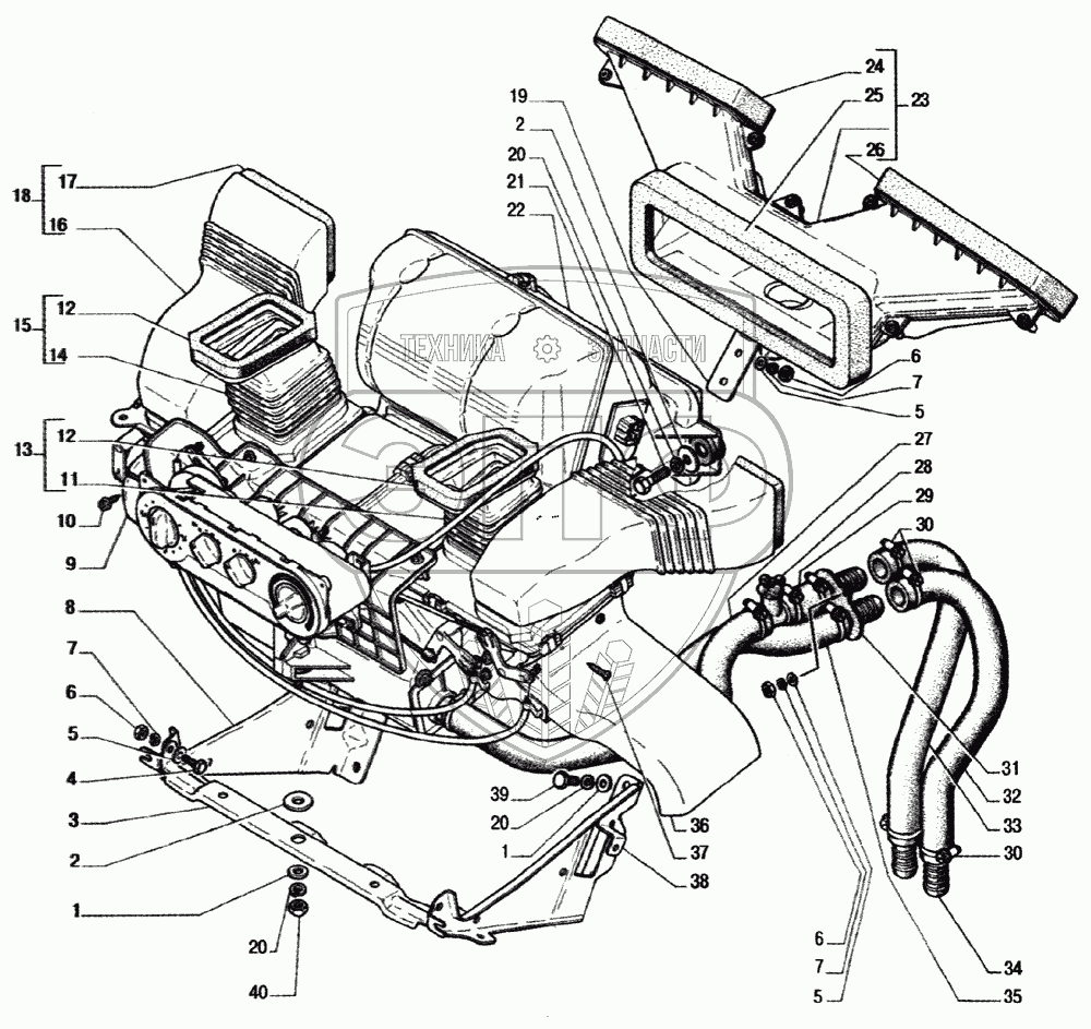 Каталог запасных частей к технике: ГАЗ-33104 Валдай. Установка отопителя