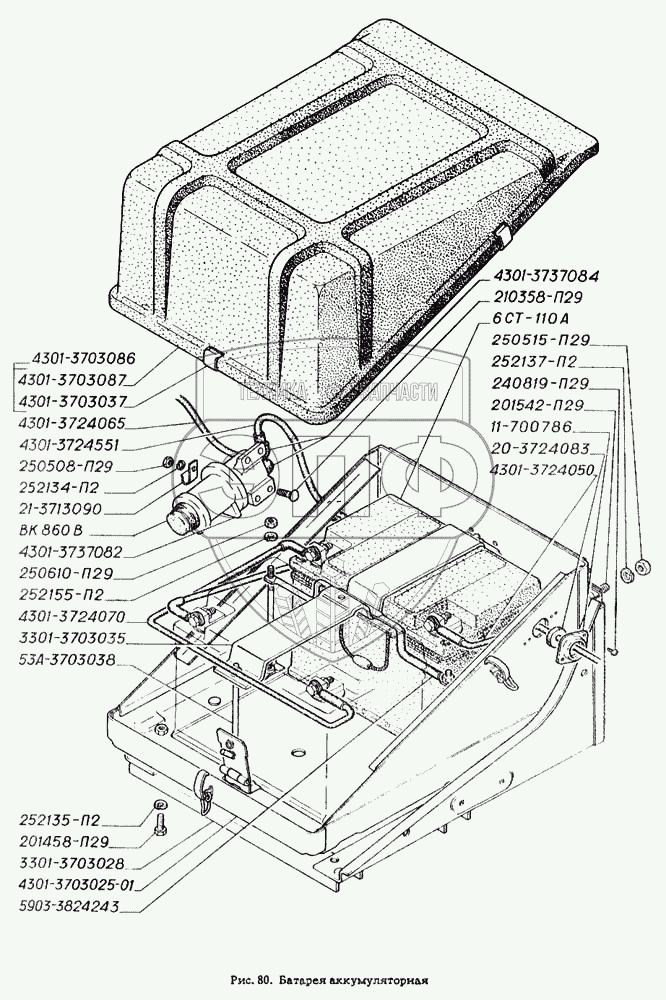 Каталог запасных частей к технике: ГАЗ-4301. Батарея аккумуляторная